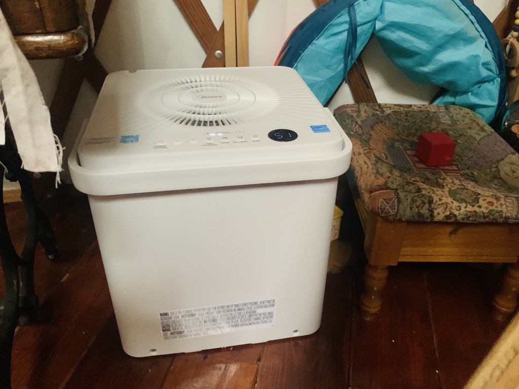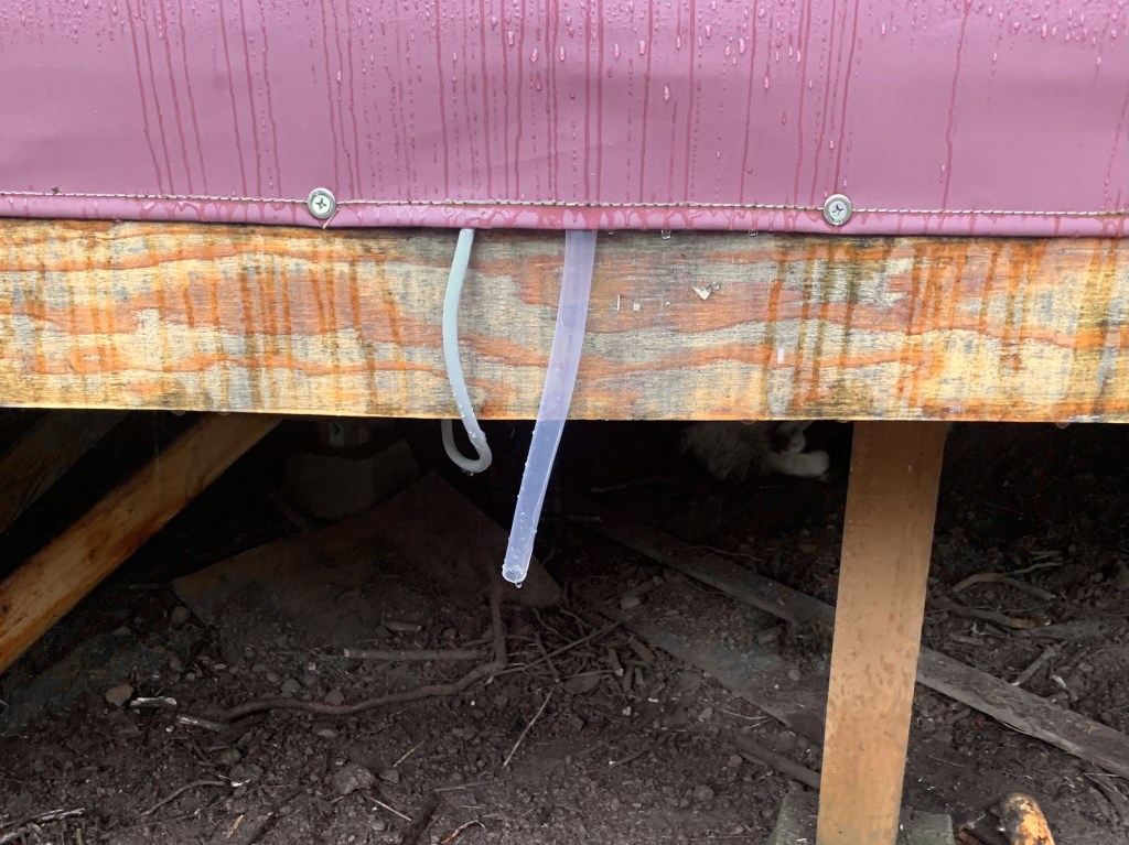 We also finally bought a dehumidifier for the yurt and got it set up with a 200′ extension cord to the shop. It’s been running for a couple of days now and has made a HUGE difference in the amount of moisture accumulating on everything! We’ve got it set up near an exterior wall, and it has a nifty feature where it’s able to just drain constantly through a tube to the outside instead of us having to change the bucket every day, so that’s been nice. I’m not a fan of the constant hum when it’s running… kinda takes away from the peace and quiet of our yurt life. But for now it’s something I’ll have to accept in order to avoid mold growing inside. Hopefully our future cabin won’t have so much of a moisture issue!