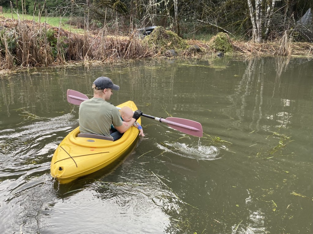 Cody and my dad worked hard on Tuesday getting the pond weeded for this year. All the weeds will go to the compost piles and various garden beds around the property that need some extra good nutrients. And of course pond day ended with the annual tradition of taking a quick spin in the kayak!