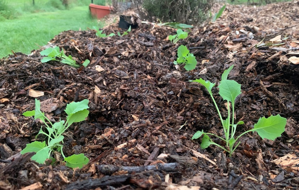 Feb 1– Planted Blue Curled Scotch (BCS) (2022) In seedling tray. And direct winter sowed (DWS) one spot into kitchen garden.