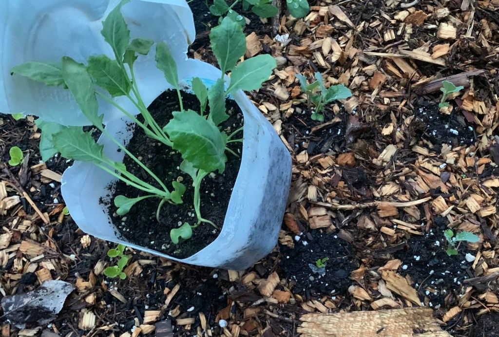 Apr 1- Planted five Gemini F1 in the gaps of the sprouted radishes.