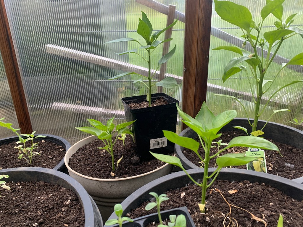 Apr 17- Bought one Gypsy Sweet in a 2qt pot (hoping to get peppers earlier) and a six cell flat of Sweet Rainbow Mix Bell Peppers. They were all planted in the greenhouse except one of the Rainbow blend will be transplanted outside when it’s warmer. This plant will be separated from one of the others instead of cutting off to thin.